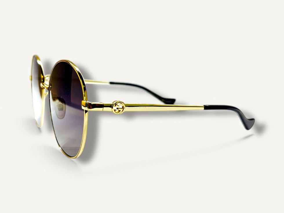 L’eleganza contemporanea incontra il lusso iconico di Gucci, un occhiale in metallo color oro che esprime stile e raffinatezza.